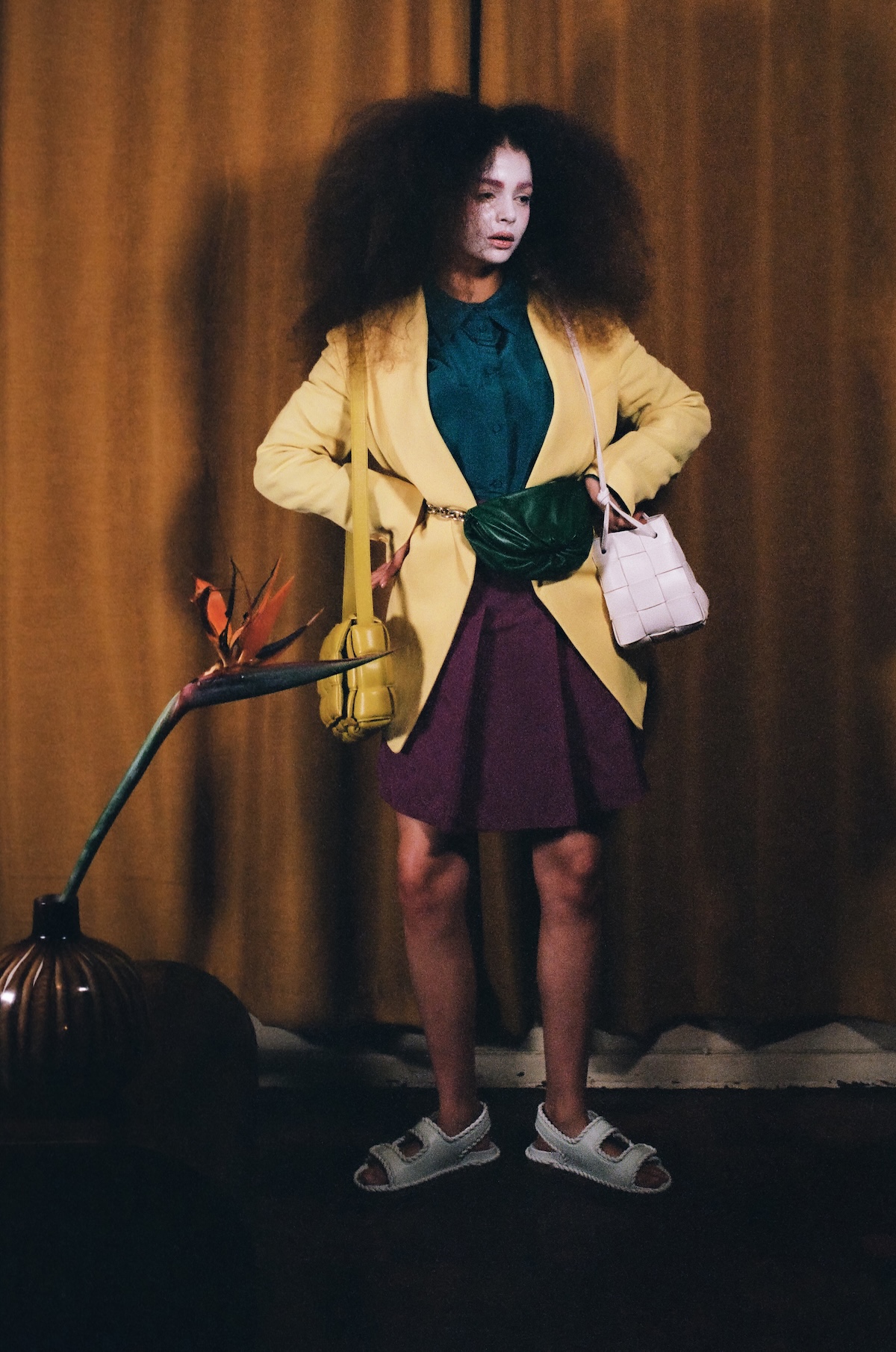 Jacket Sportmax, Shirt Valentino, Skirt Miu Miu, Bags & Slides Bottega Veneta