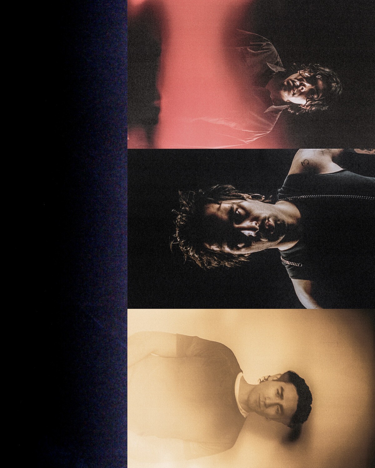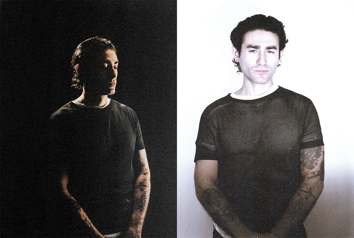 (l–r) Jonathon wears a t-shirt from the stylist’s archive layered under a Helmut Lang mesh shirt.
