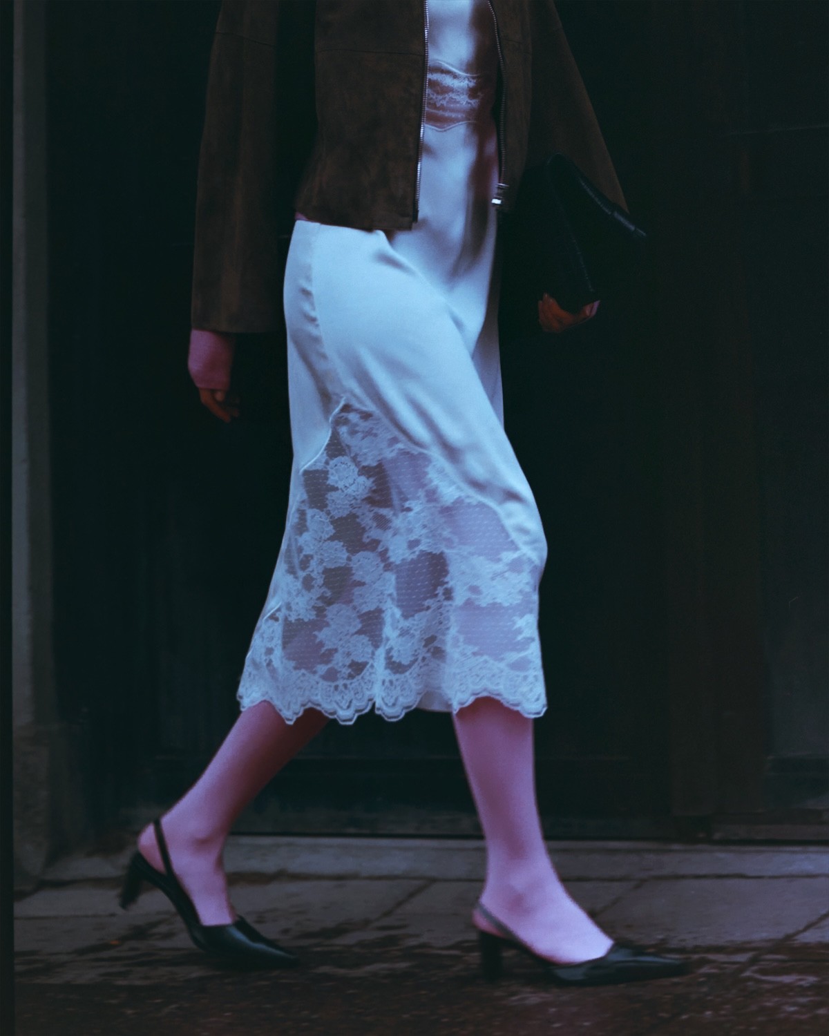 Jacket & Bag Munthe, Dress Samsøe Samsøe, Stockings Swedish Stockings, Shoes Filippa K