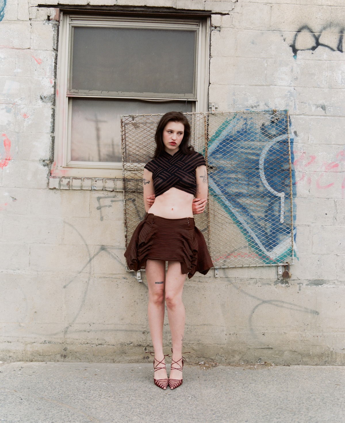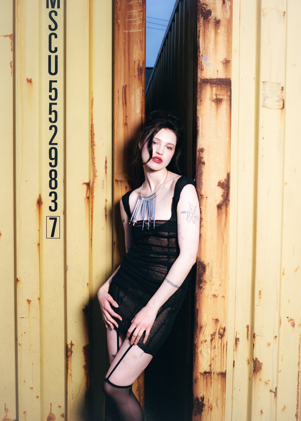 It’s no surprise, then, that her emphasis on materiality became the heart of her brand. The label centers on giving new life to discarded materials—even down to its name, which comes from the Latin word for death, mort. Deriving from an upcycling project Masterson completed during her studies at the Rhode Island School of Design, the brand was born in 2021 as a way “to have more agency on what the garments themselves are saying, and wanting to build the shape and structure from the ground up, as opposed to working within the parameters of reworking something.”