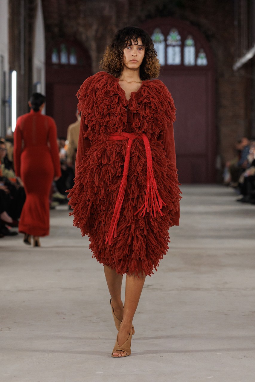 Rachel Scott’s highly anticipated debut as creative director was the best of both worlds—transforming the New York label’s signature polish into something a bit more undone. Dresses arrived lightly rumpled with irregular tucks, while frocks twisted across the back and fastened with button closures that felt caught mid-motion. Silhouettes were sharp but never stiff: truncated waists, elongated legs, and softened tailoring in double-faced wool, matte viscose, and Donegal knits. Vivid florals appeared in painterly prints and on hand-treated leather, interrupted by grommets and half-cut fringe that introduced subtle friction. Grounded by a clear point of view on who the modern Proenza Schouler woman is, Scott affirms both her sharp intelligence and artfulness.