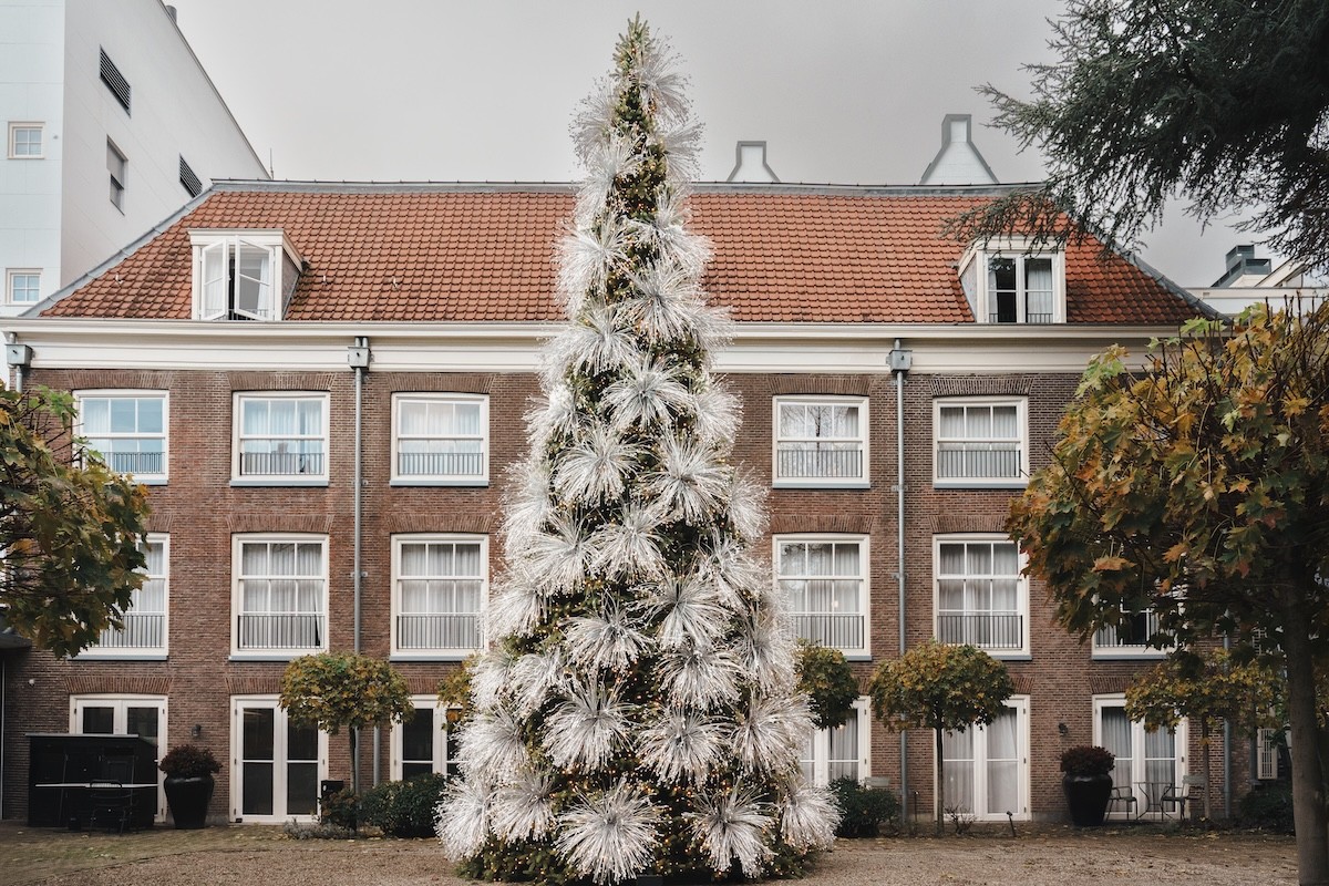 Pulitzer Amsterdam has long been known for blending heritage, design, and quiet luxury, but each winter the hotel adds another layer of magic with its annual Christmas tree. This year, the hotel partnered with Dutch couture designer David Laport, whose sculptural pleats and architectural silhouettes have dressed icons like Rihanna and Solange and earned him international acclaim. His nine-metre installation, Festive Sparks, now stands in Pulitzer Garden as a shimmering ode to craftsmanship, texture, and light, a couture Christmas tree inspired by the hand-embroidered 3D work of his latest collection, the energy of fireworks, and the hotel’s own eclectic design language. It was this collaboration that drew me to Amsterdam for two days of boats, ateliers, candlelight, and gentle festive glamour.