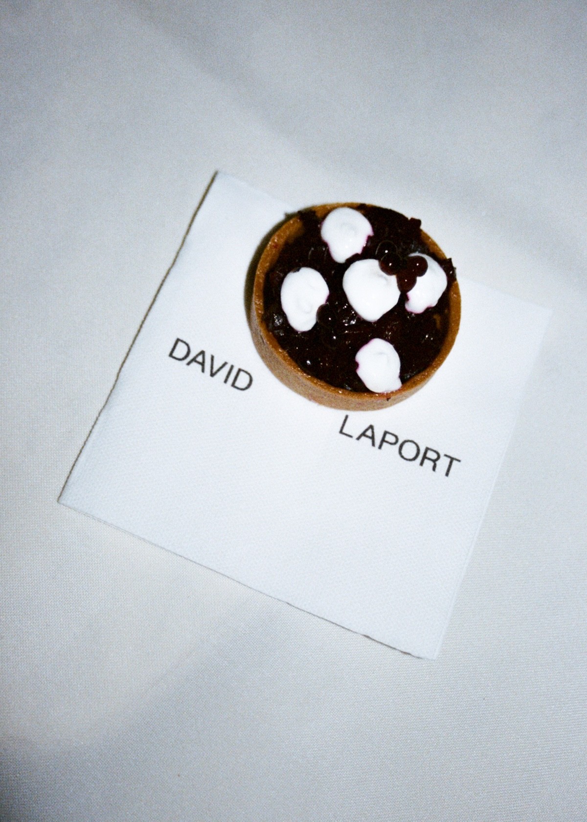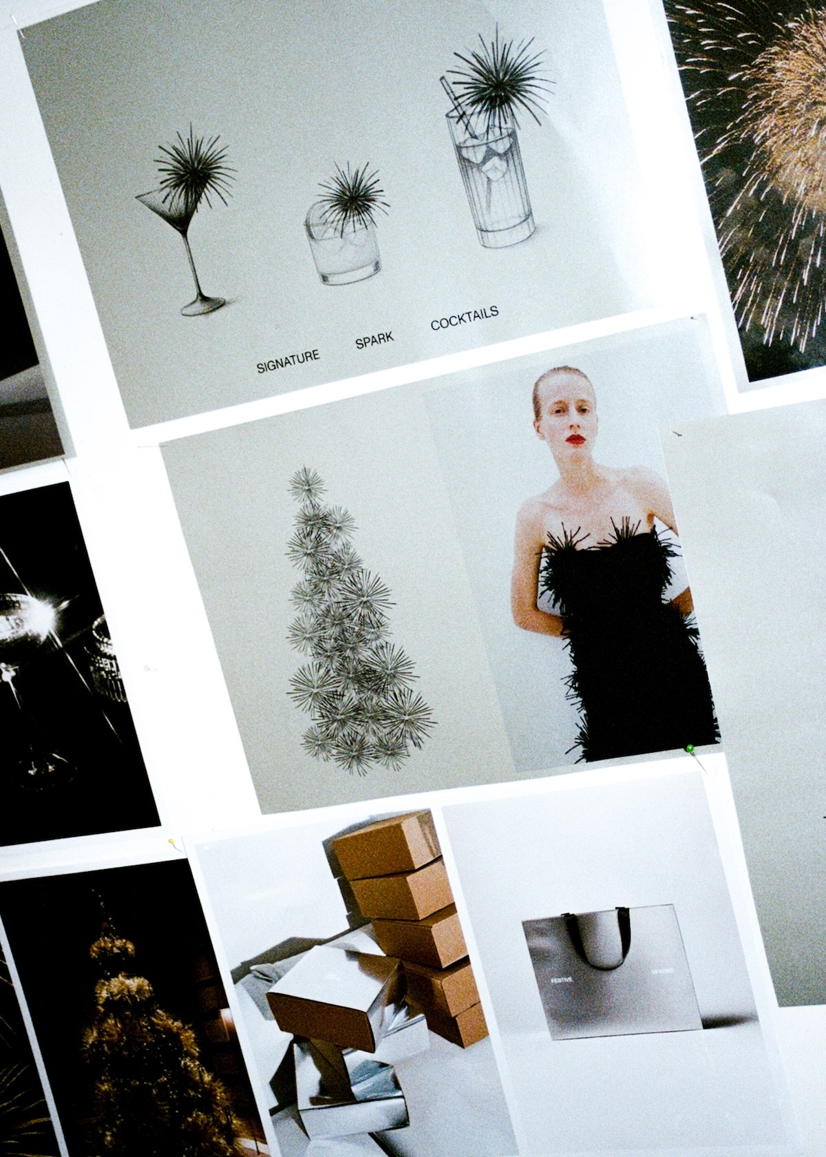 The boat delivered us straight to David Laport’s atelier, a bright and intimate space that revealed the full story behind Festive Sparks. Moodboards lined the walls alongside embroidered samples from India, architectural pleats, and the hand-beaded black dress that has become one of Laport’s signatures. He explained how important it was that the tree carried his couture language rather than becoming a simple decorative piece. He could have created a classic bauble-covered design, he said, but the joy and the integrity lay in crossing his world with Pulitzer’s. Seeing the craftsmanship up close made the installation in the garden feel even more alive.