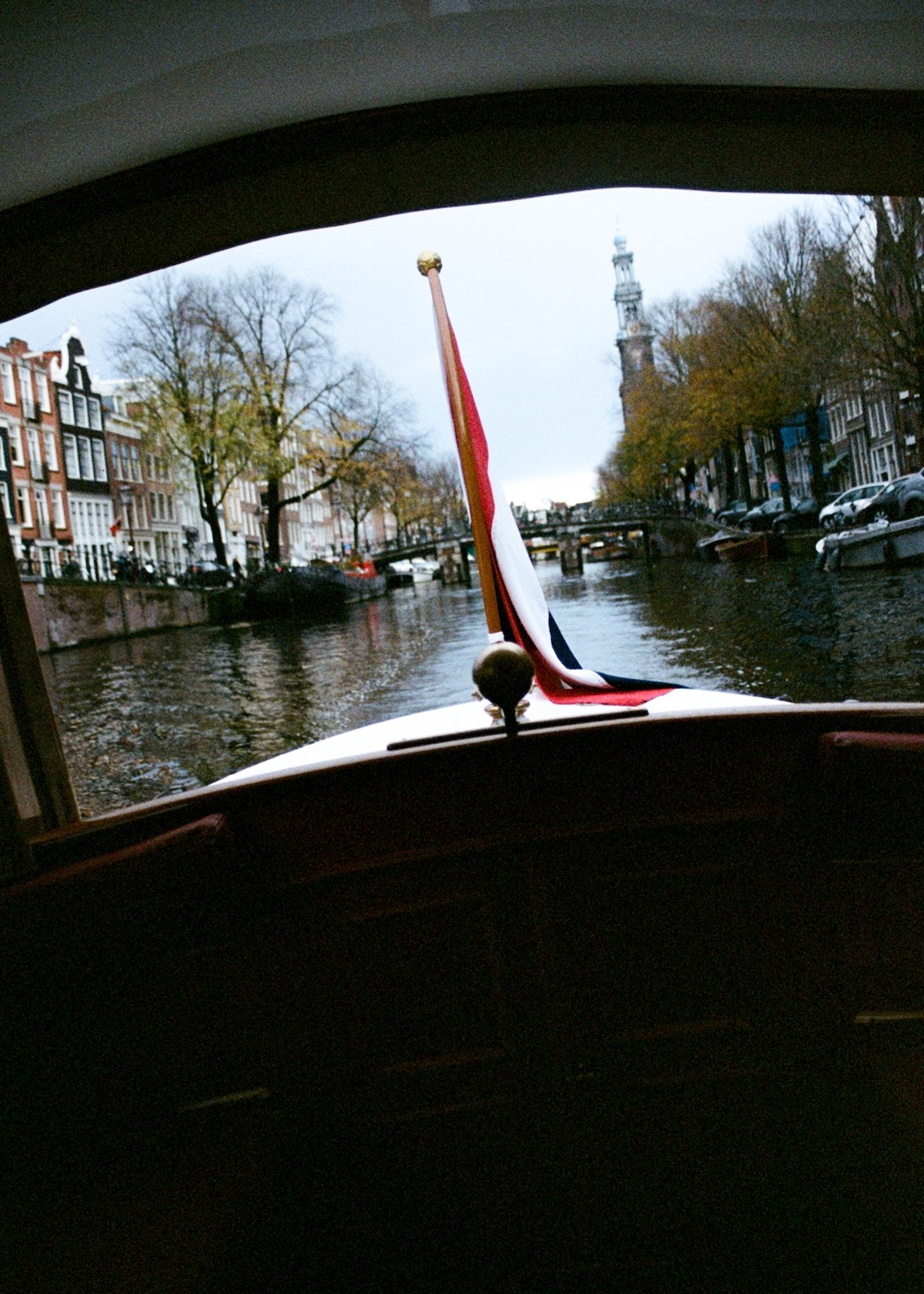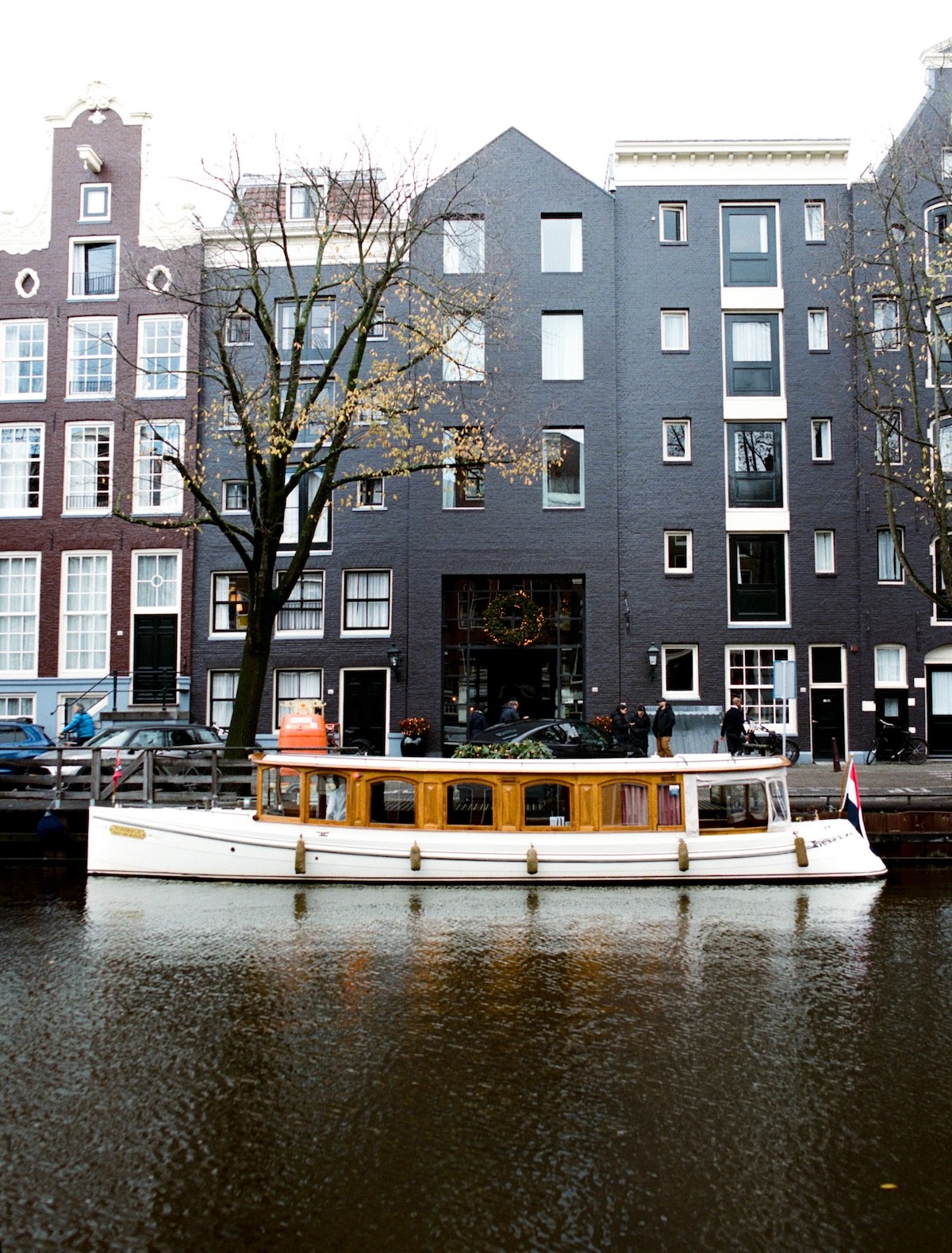 Dinner at Jansz closed the evening, but the next morning began early with breakfast back at the same restaurant before meeting the group in the lobby. Pulitzer had arranged for us to board The Tourist, their 1909 saloon boat with polished teak, brass details, original bevelled glass, and the charm of a moving museum piece. There is truly no better way to see Amsterdam than from its canals. As we glided along the water, just as winter was beginning to settle over the city, I tucked myself toward the back of the boat, watching the facades and bridges roll past in a soft, muted palette.