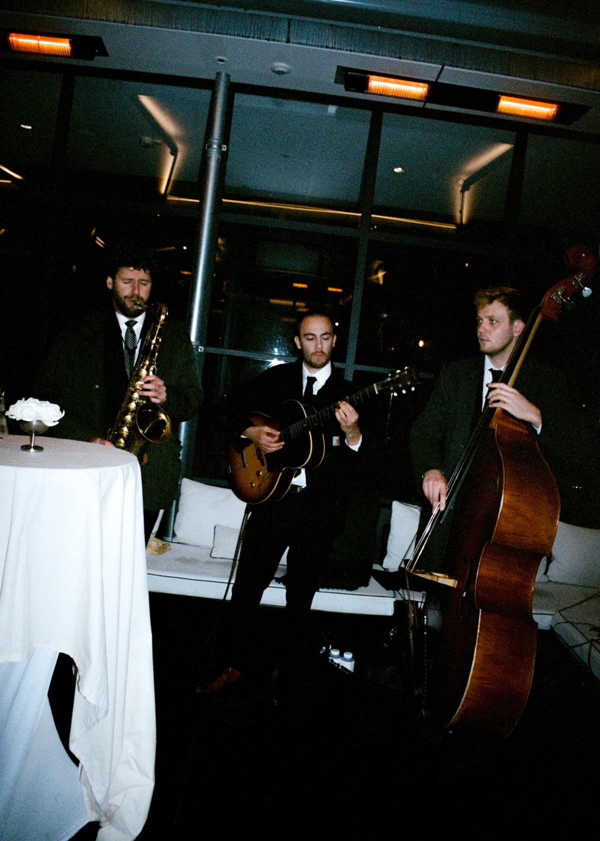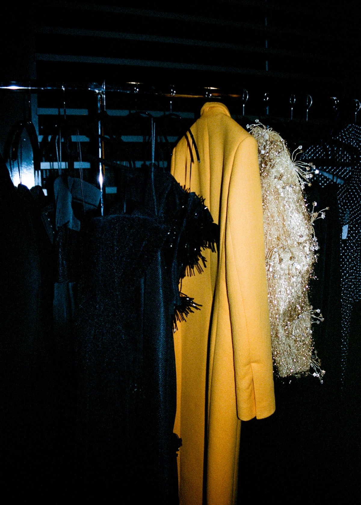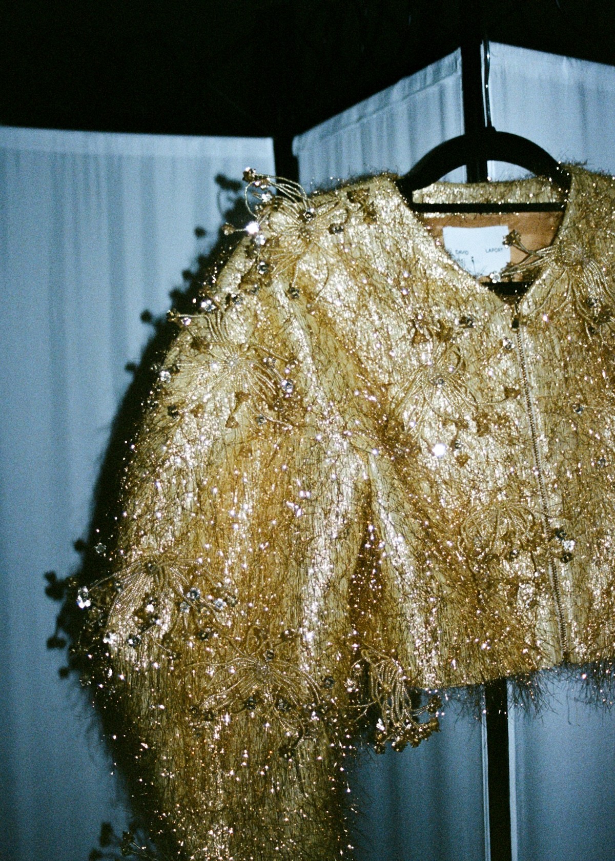 The boat collected us once more and carried us back for the tree unveiling. Guests gathered in the garden as a jazz band played warm, festive melodies. The tree itself, towering and champagne-toned, glowed like a sculpture of light, its form catching every shift of movement. Canapés were served on David Laport napkins, an unexpectedly chic detail, and inside the hotel, a pop-up offered the chance to try pieces from his latest collection. I slipped into a gold jacket that shimmered so beautifully, I joked that I looked like the star meant for the top of the tree, though the temptation to buy it was very real.