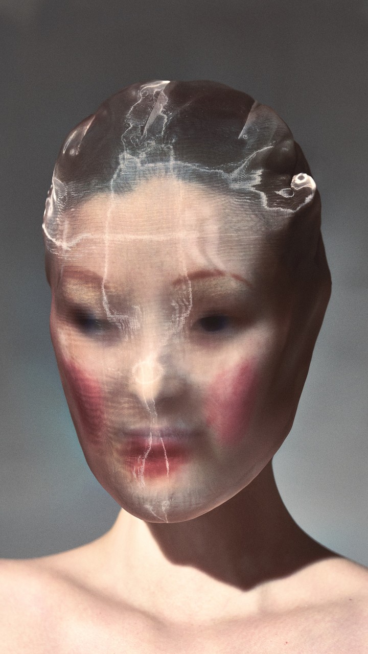 An army of face masks, a house signature, reinforces a sense of feminine concealment while anchoring the collection in Martin Margiela’s enduring language of anonymity.