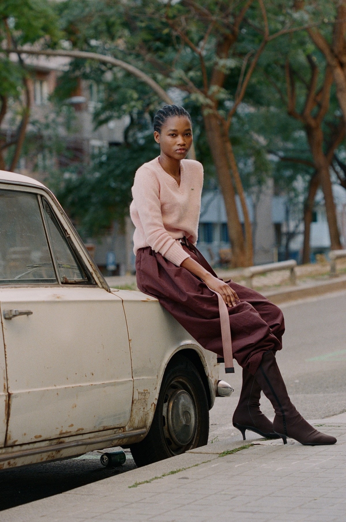 Sweater Lacoste, Trousers ISPA Nike, Boots Prada