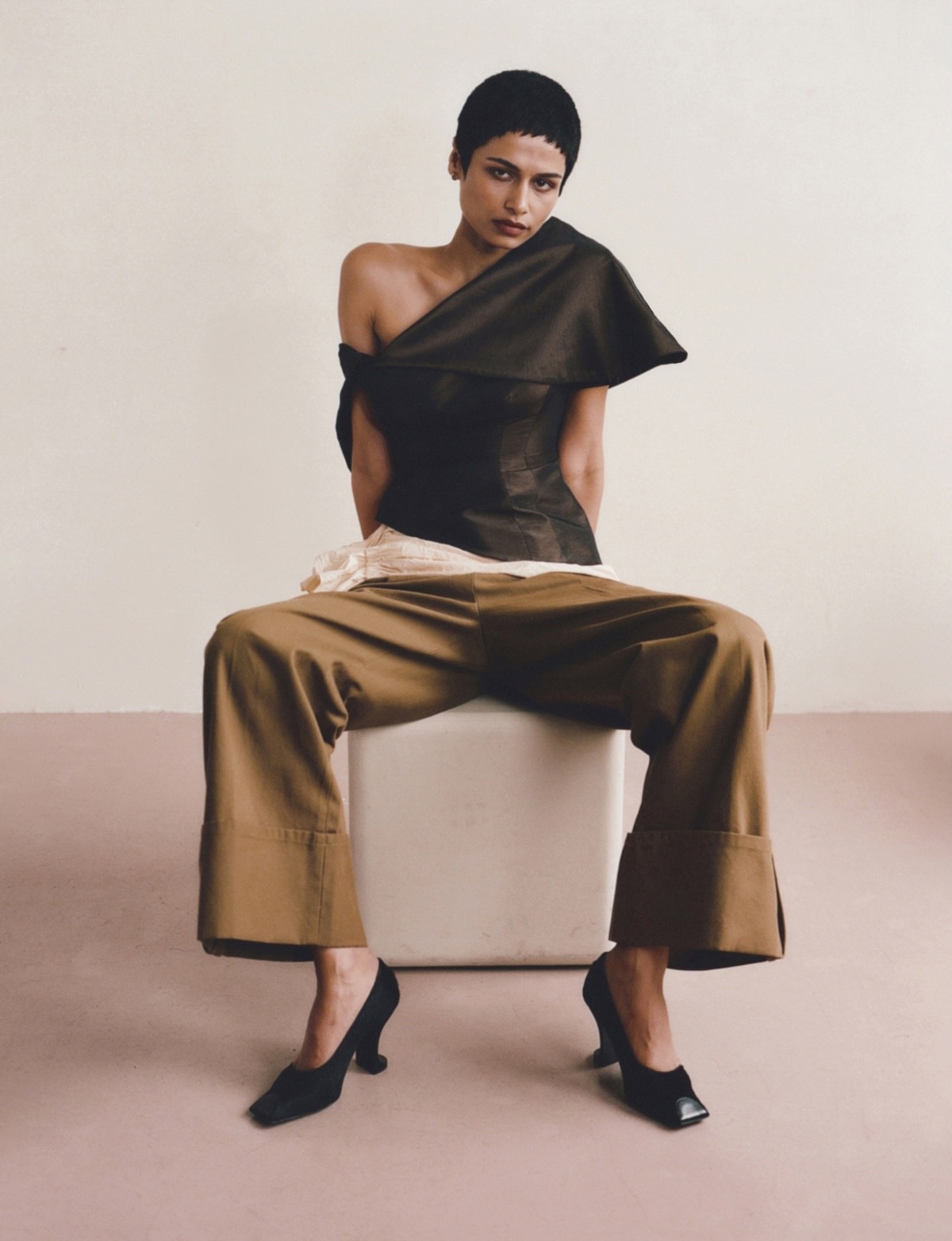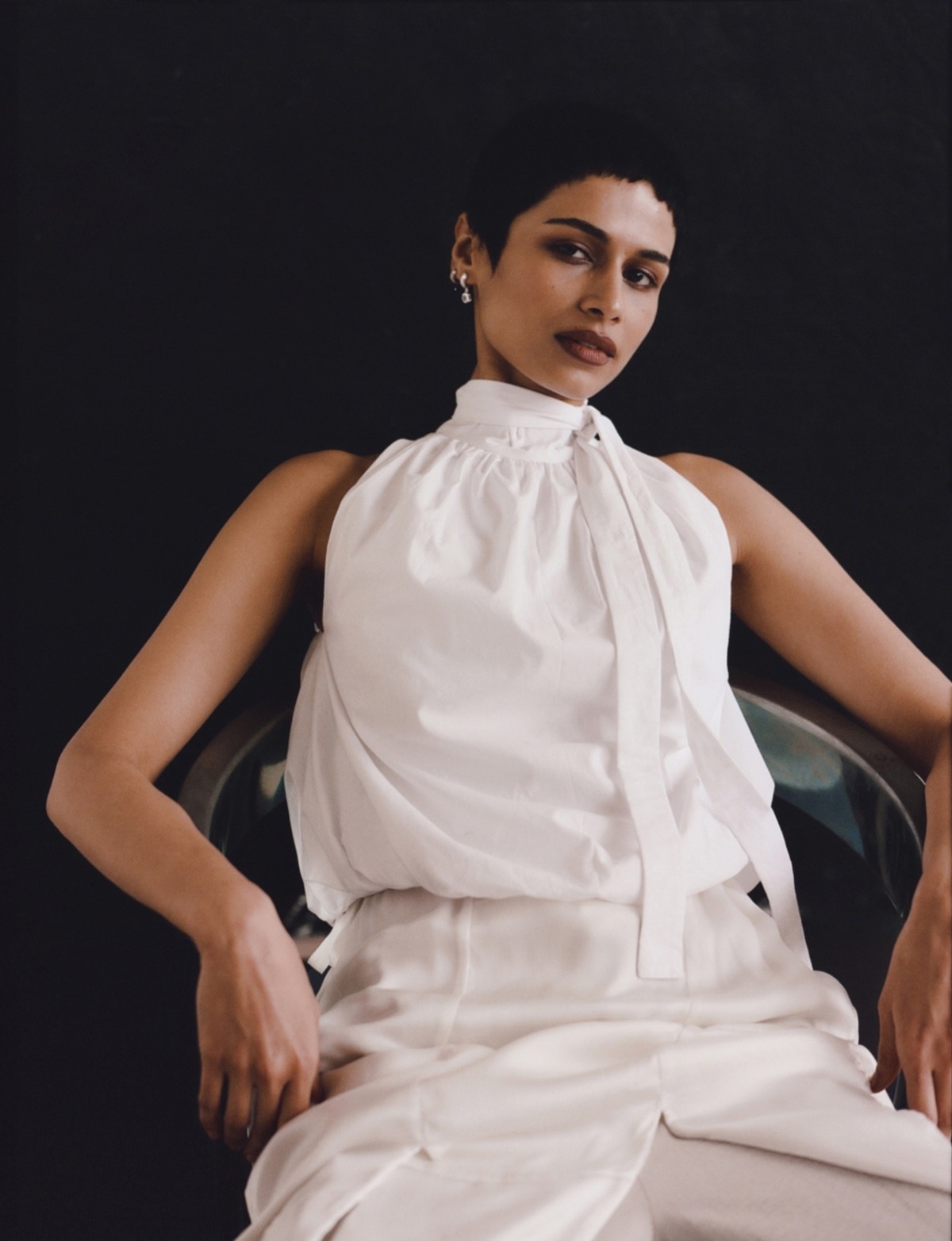 Top Geordie Campbell, Skirt Phoebe English, Trousers Eudon Choi, Earrings Dévé