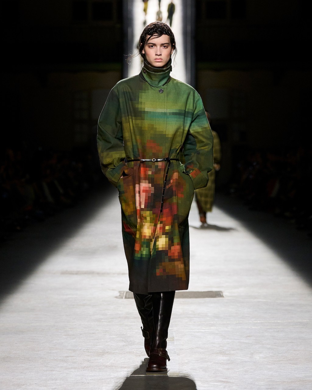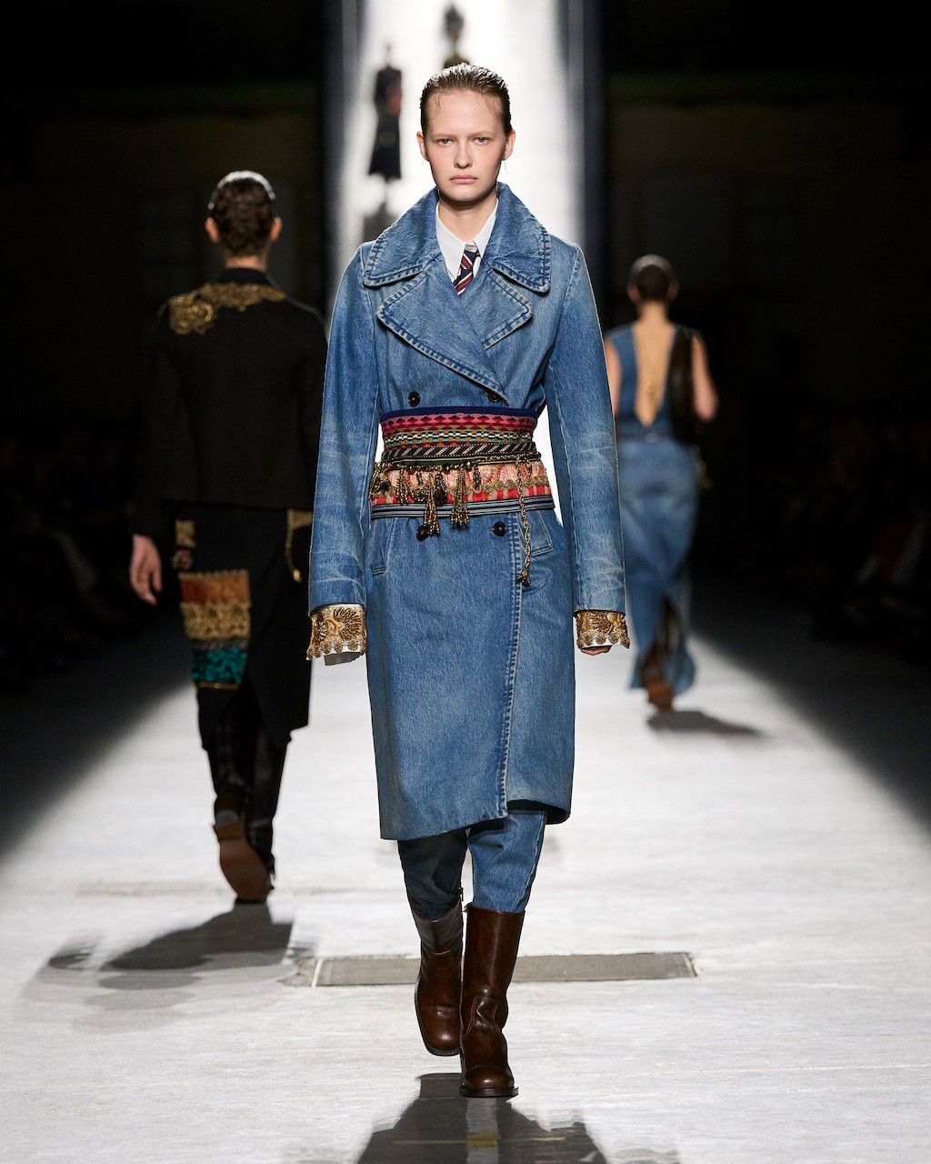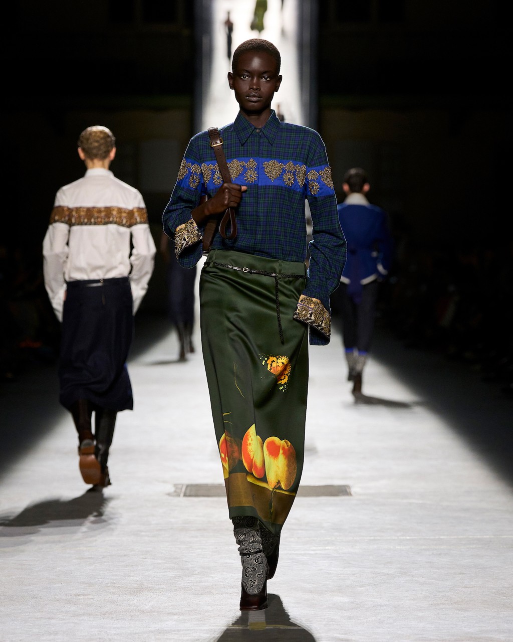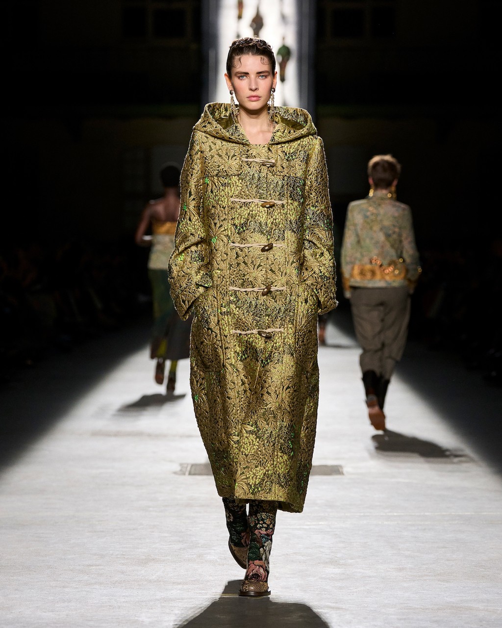 Garments collide unpredictably, and the house’s decades of fearless pattern play and cultural collage become subtly evident in how the sophistication of the fabrics is interrupted by bursts of youthful rebellion.