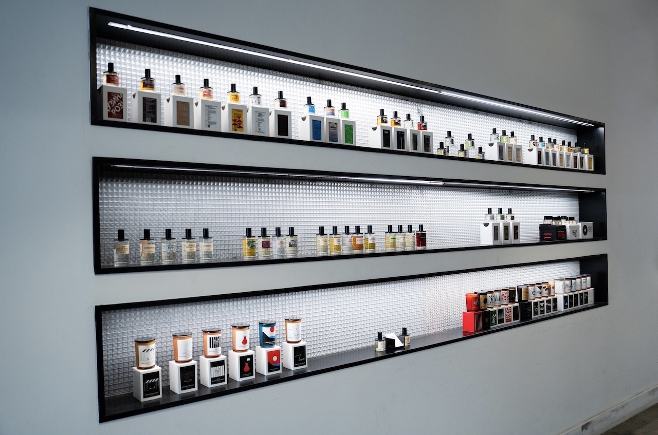 Music hums constantly through the space, acting as both muse and catalyst—an energy that feels intertwined with the evocative power of fragrance. “They’re both invisible, but they can completely change the environment you’re in,” David notes. Like a song, the fragrances create a cacophony of notes; the story is the frame, and imagination carries it beyond.