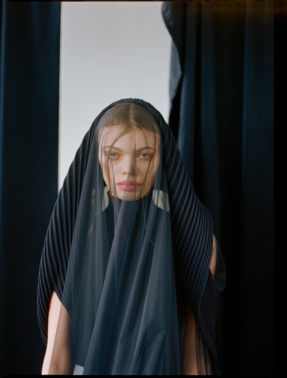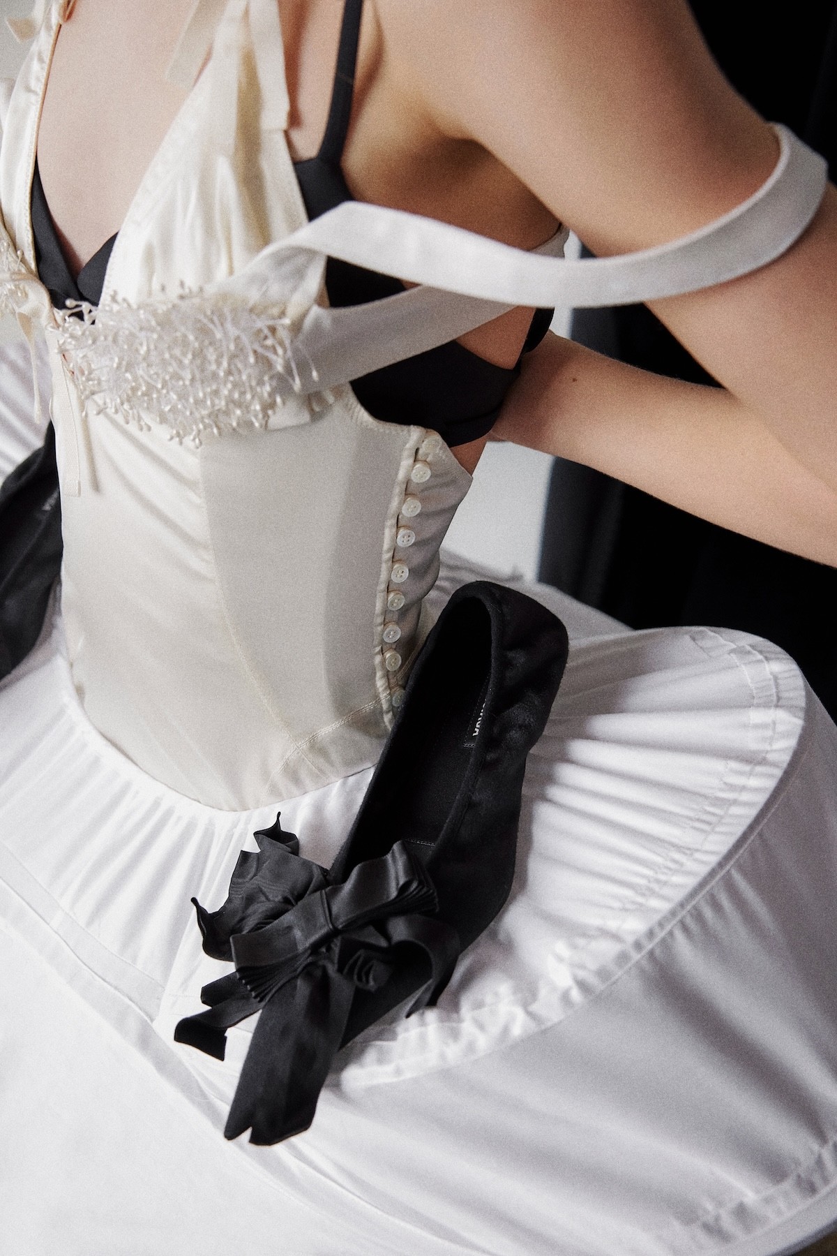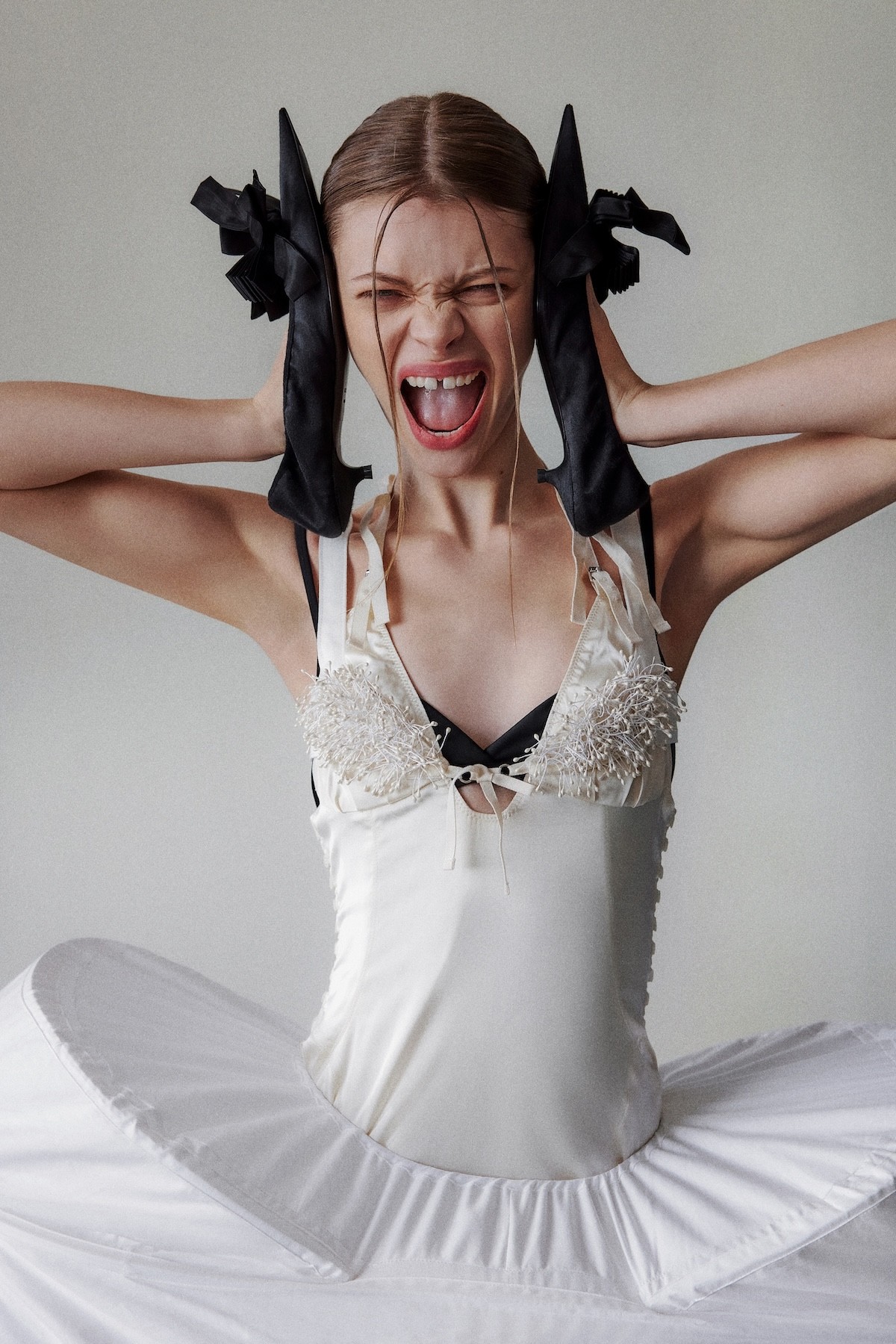 Cap Issey Miyake, Top Jacquemus, Bustle & Tights Stylist’s Archive, Shoes Givenchy