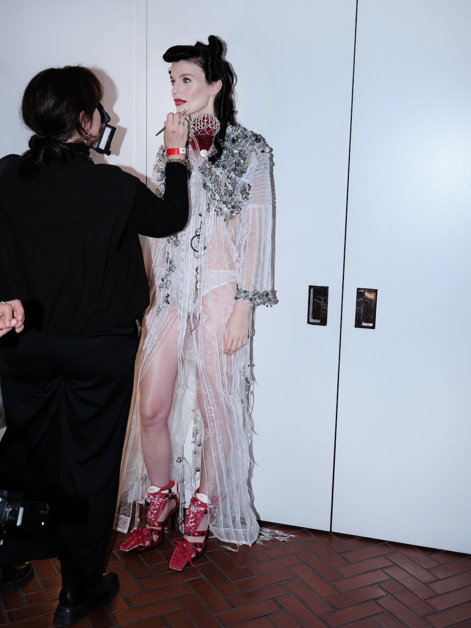 As time has gone on and we’ve done a lot of custom work, there’s been less and less time to sketch and really develop those academic folders that study everything. But I think a lot of that was done in my training. I’ve been this sort of encyclopedia of research for the last seven years of being a student and working at J.W. Anderson and the various things that I’ve done. We tend to work very instinctively in the studio. We don’t plan, we don’t sketch, we just make. I’ve called it in the past “Jackson Pollocking”—it’s like throwing paint on the canvas. You don’t think about where that paint will land but we just make and that’s the way we approach a lot of it. It comes from the heart and the soul. Then later, I’ll dig deeper into what the reference was. For example, we did the shredded dot tassel skirt and I didn’t quite know what that concept was and then I realized, it’s the hole-punched love letter. We build the story from the start, sometimes we find what it is afterward. It’s a very dynamic process. We don’t have the time, we just have to go for it.
