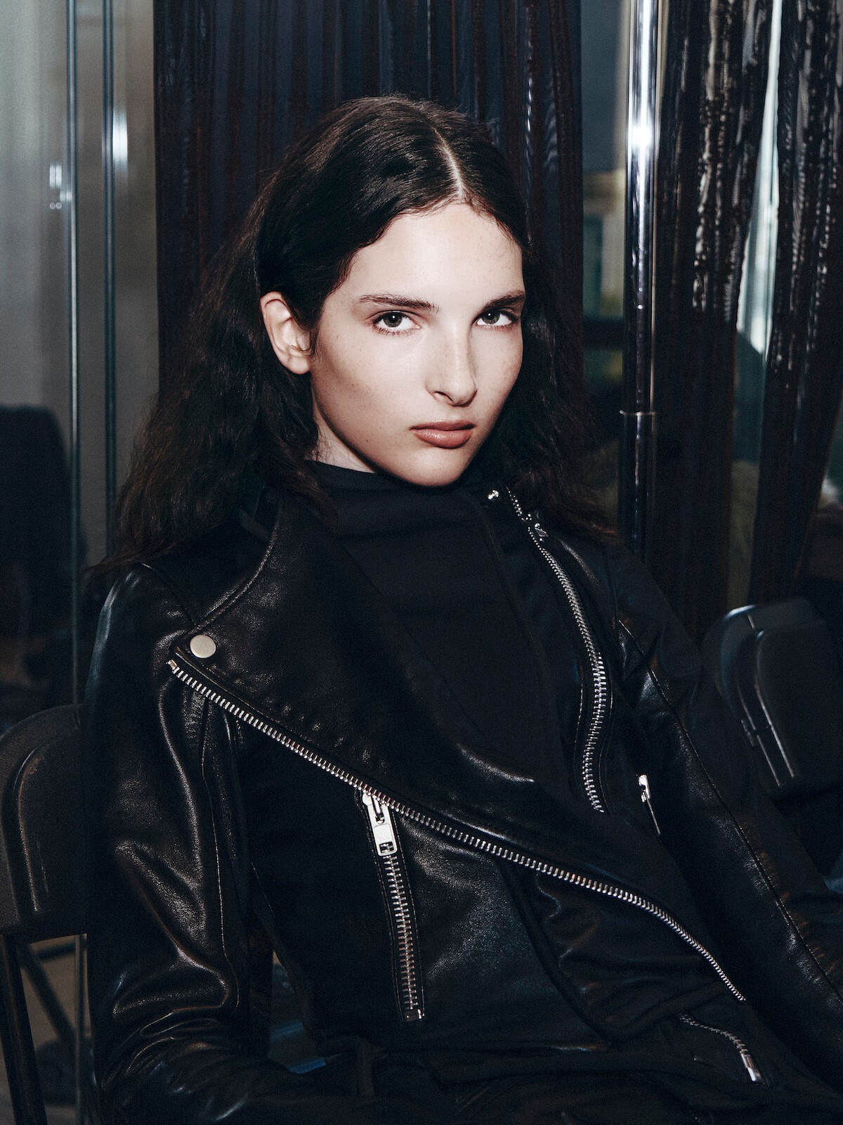 This season, designers Christa Bösch and Cosima Gadient staged an evolution of their Berlin-rooted vision of deconstruction and raw disruption, pushing it toward greater precision and lightness. The figure of the fool emerged first in subtle nods—sharp biker jackets in fresh leather slicing clean lines against high-volume faux fur. Sculptural scuba shapes moved with an effortless fluidity, while vibrant orange puffers punctuated the lineup with dramatic bursts of color.