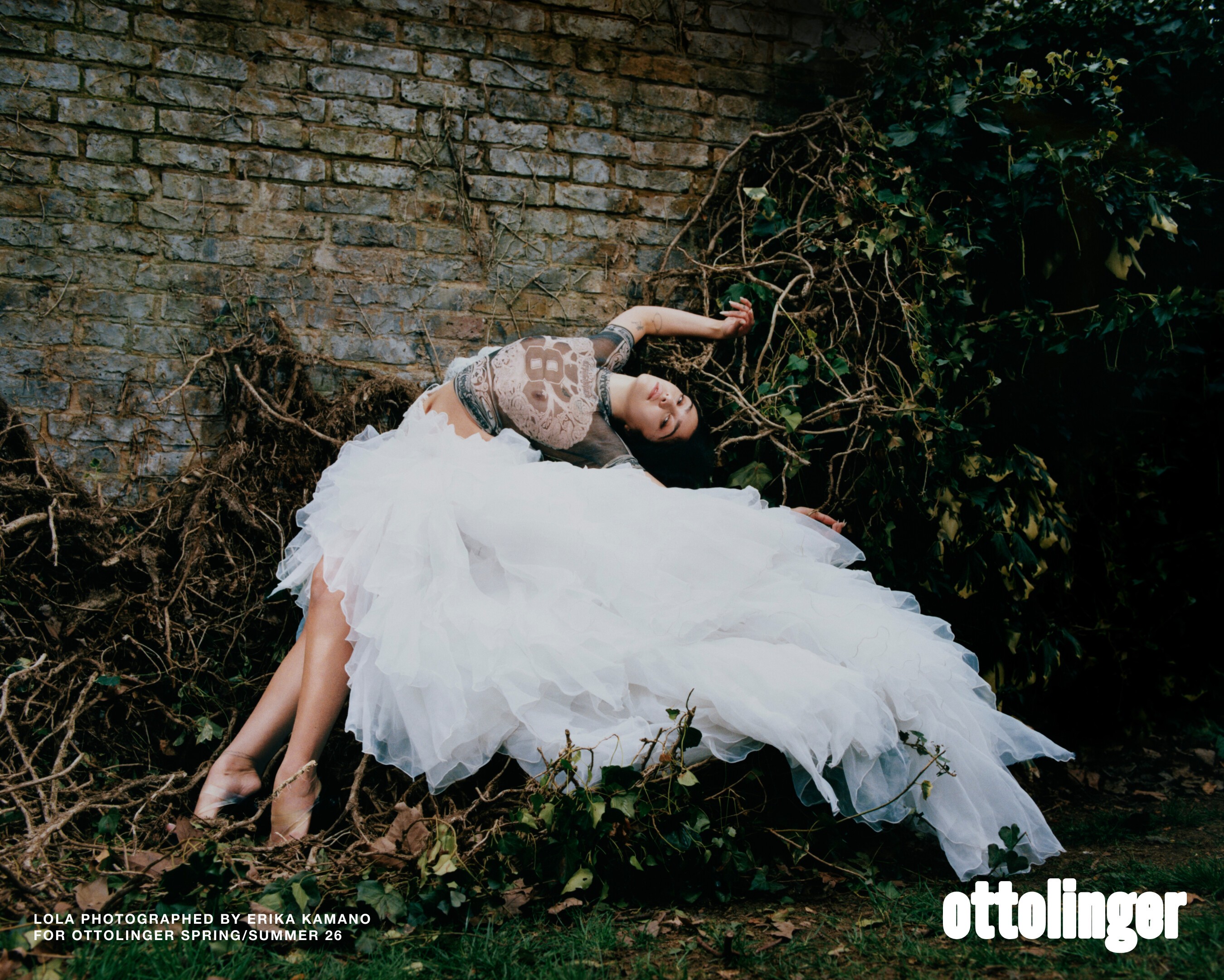 Photographed by Erika Kamano, Girlfriend moves the collection from the Paris runway into the raw terrain of London, where overgrown gardens, weathered brick, and unmanicured grass give Ottolinger’s vision a lived-in pulse.