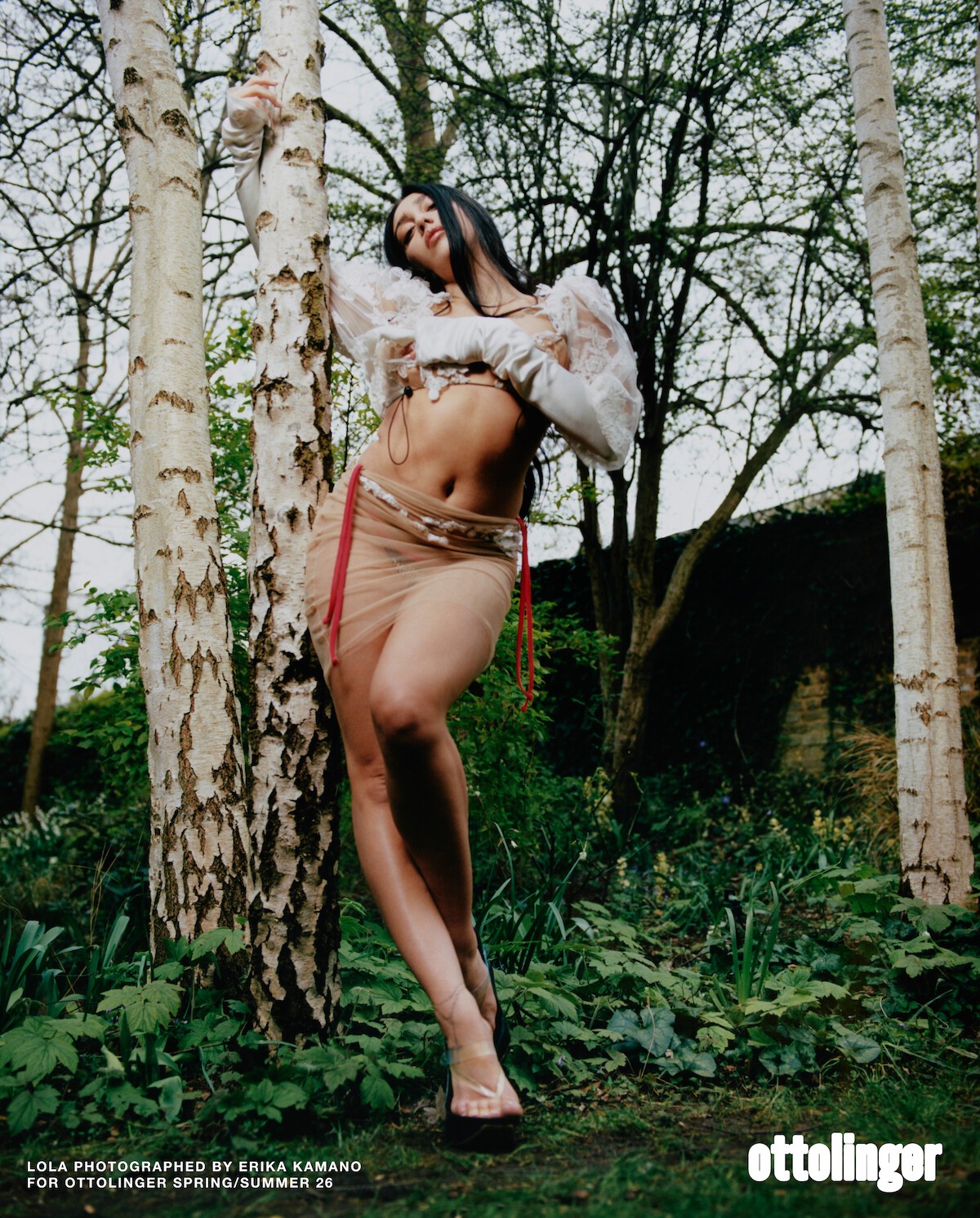Kamano’s images lean into that friction. The campaign holds Ottolinger’s ongoing dialogue between the natural and the constructed but refuses to make it pristine. London’s crumbling walls, birch trees, untamed grass becomes less backdrop than texture.