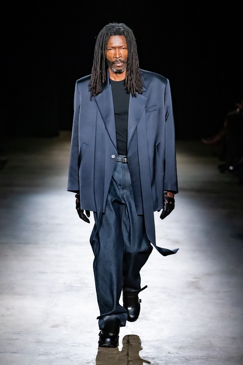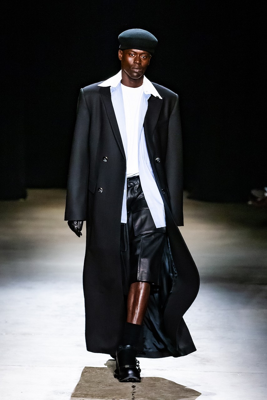 From the first look onwards, the collection felt like a mirror of past, present, and future—a true evolution of their roots. Elevated streetwear, precise tailoring, and a distinct rebellious edge stayed true to their DNA, while remaining rooted in a contemporary point of view. Wool blazers carried sharp shoulders and thoughtful proportions; pleated trousers and utility-leaning separates nodded to the brand’s downtown ethos. Leather played a central role, too—from hardy jackets and anoraks to croc-effect aviator styles that brought texture and tension to the lineup.