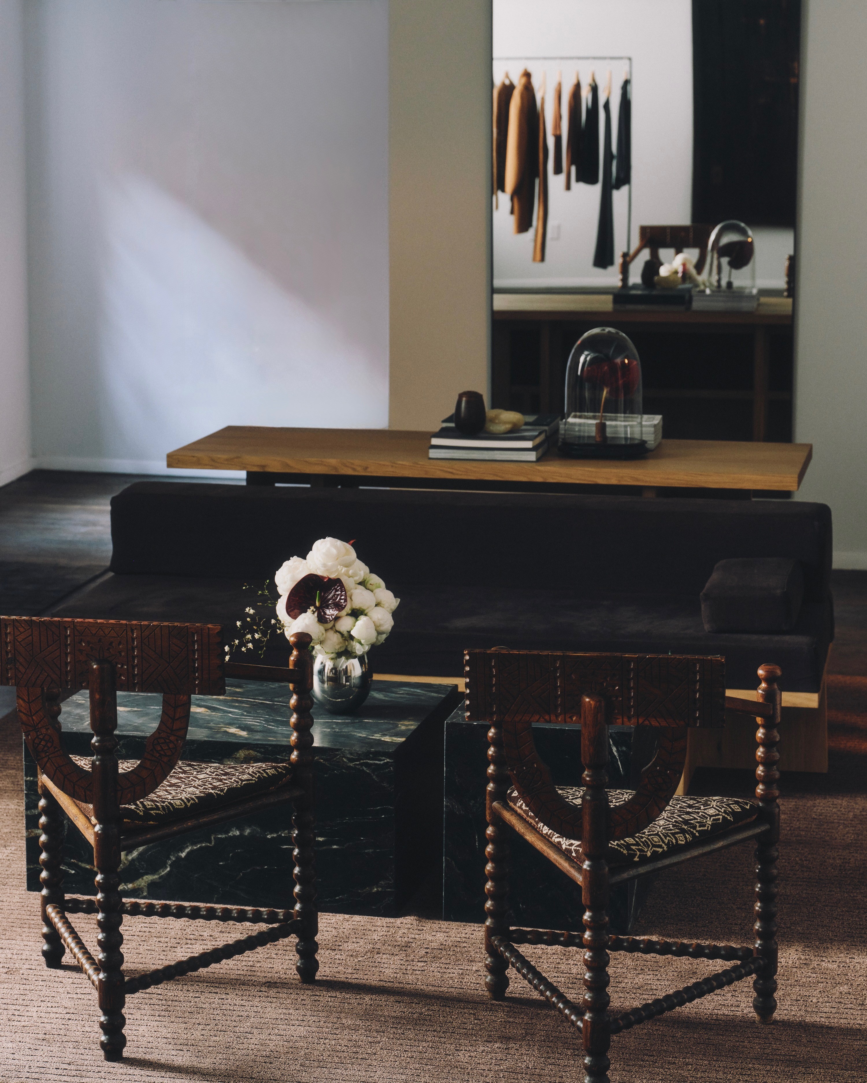 “We wanted the space to feel lived-in yet precise, where history and modernity coexist without competing. Luxury, to me, is found in restraint,” said Saint Art Creative Director Donald Oliver, who also curated the interiors. Leaning into materiality and restraint, the studio blends vintage and modern references that evoke a quiet poetry.