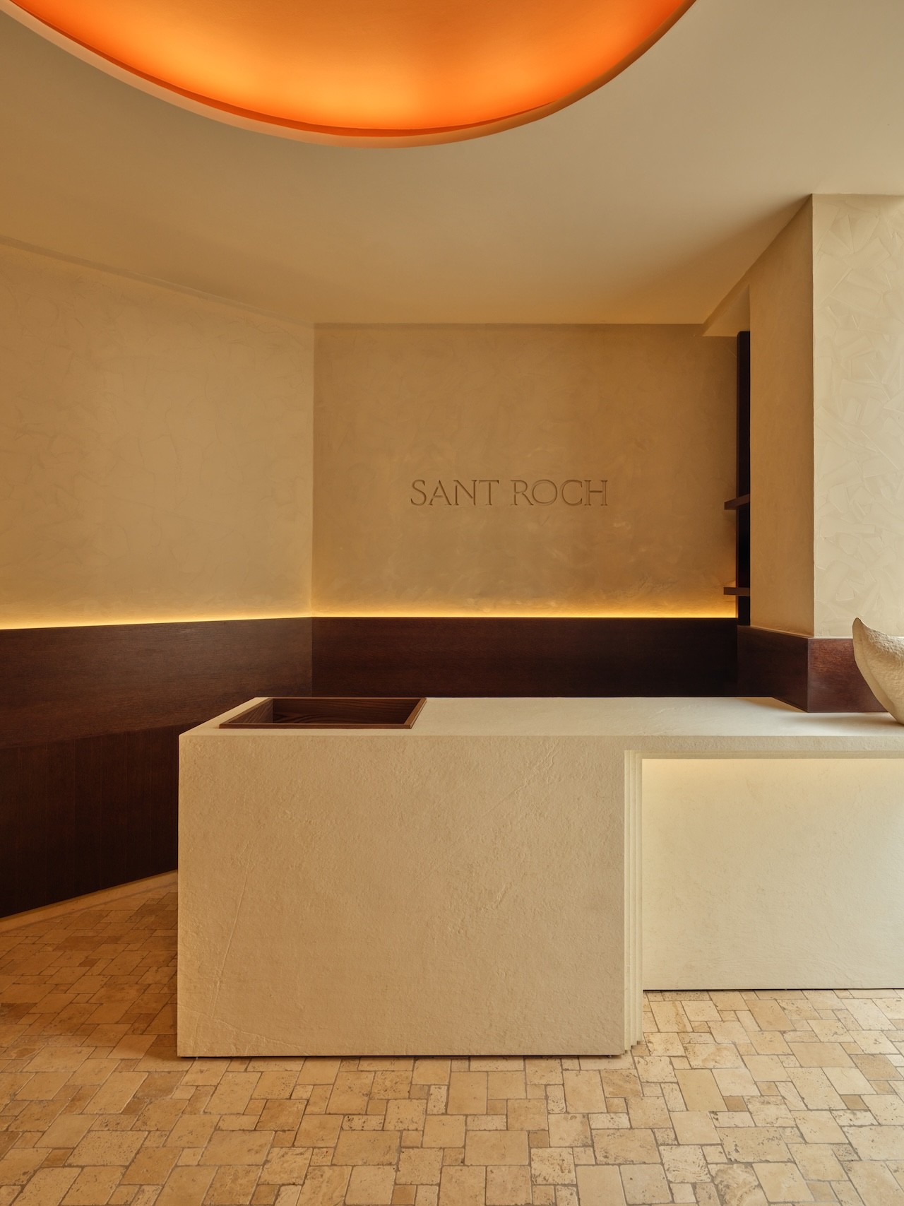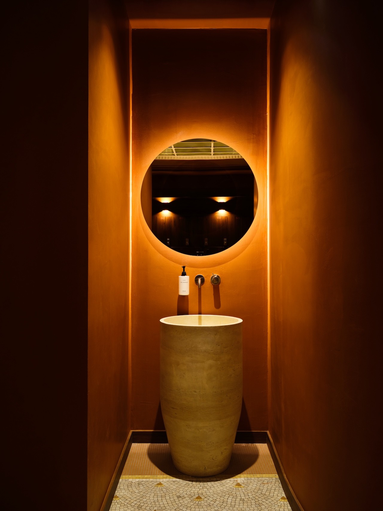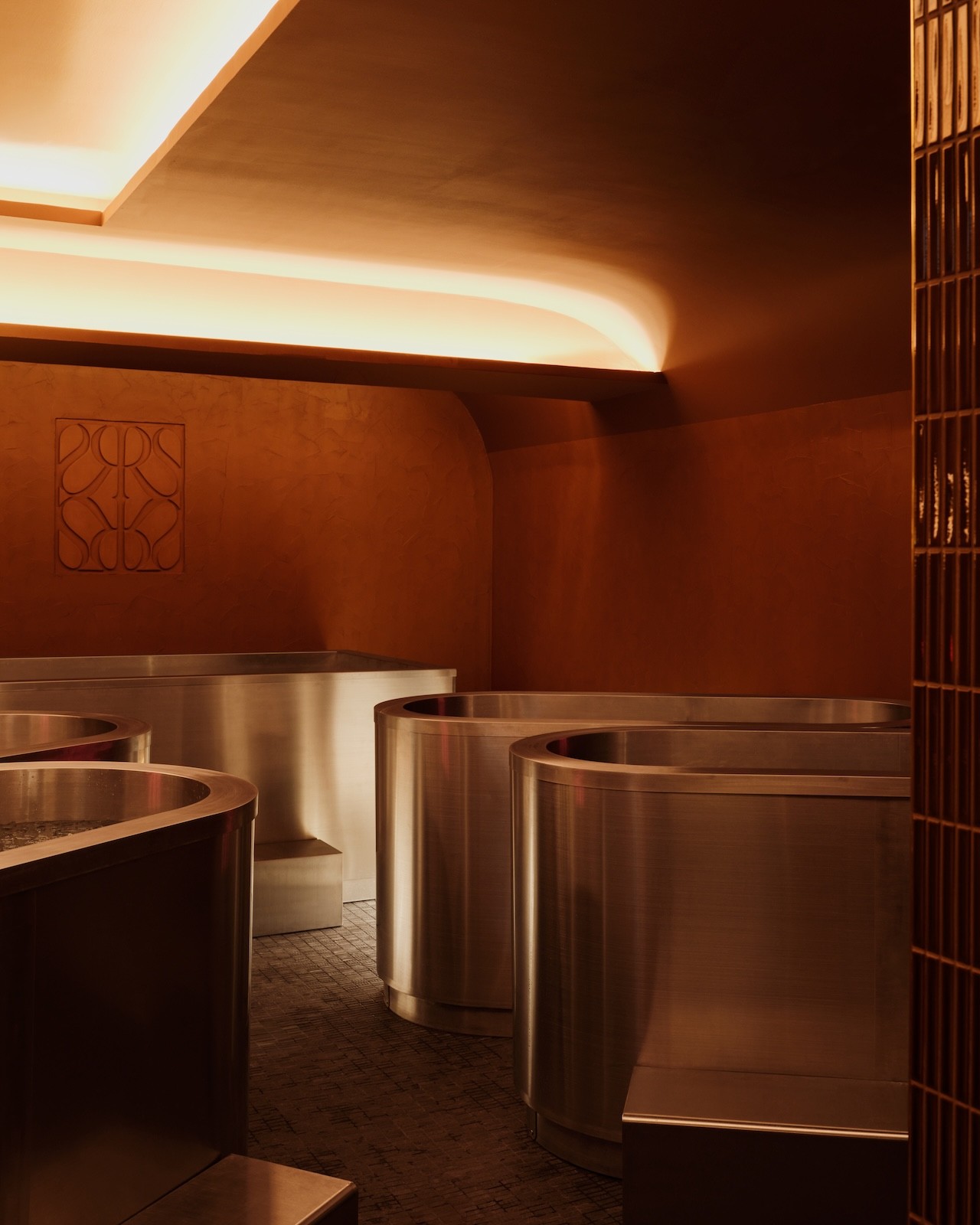 For that trance to take hold, don’t think of Sant Roch as an ordinary spa. Intensely tactile and sensory, yet monastic in its restraint, the 400 square meters of wellness space soften the eyes with low amber lighting, soothe ears with curated sounds that rise with the steam, and tickle nostrils with aromatherapy scents—all against an earthy palette where warm sauna wood and terracotta tiles bleed into one another. There’s almost no other color in sight except for the brushed-steel plunge tubs that read industrial, and chalky lime-plastered walls at entrance and exit, yanking you back through centuries to the ancient Roman baths of Lutetia.