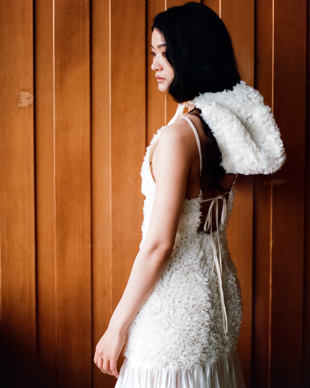 A sense of inhabiting space carries through the collection’s narrative: a woman moving between galleries and meetings, work and retreating, all dressed in pieces that feel like a second skin. The city’s shifting climate also informs the construction. “I pull inspiration from Copenhagen—the way we have to adapt to nature all the time. We have all seasons, sometimes in the same week.”